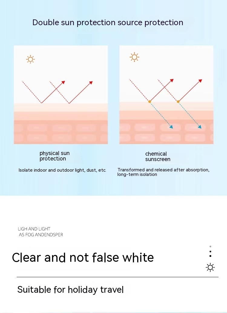 Effect: Helps protect against UV damage to the skin in daily life, providing sun protection and isolation